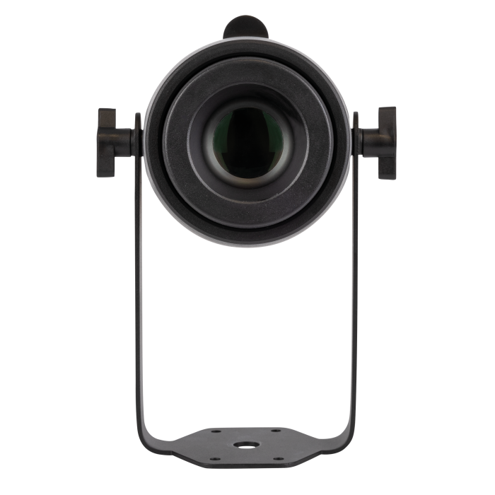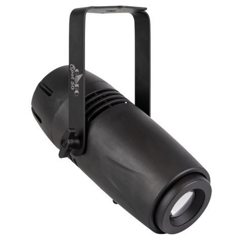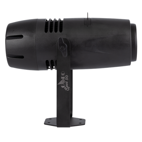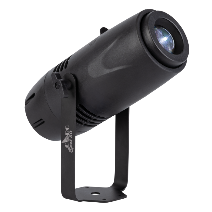 Der Artecta Gobo Spot 50 ist ein kompakter 50-Watt-Gobo-Projektor, der für die gestochen scharfe Projektion von Logos und Mustern entwickelt wurde. Mit einem festen Abstrahlwinkel von 20° und einem austauschbaren, drehbaren Glasgobo (Ø 26,4 mm) ist er ideal für den Einzelhandel, das Gastgewerbe, Ausstellungen und thematische Umgebungen. Die Rotationsgeschwindigkeit und -richtung des Gobos kann einfach über einen Regler auf der Rückseite eingestellt werden und bietet dynamische visuelle Effekte, ohne dass DMX benötigt wird. Für zusätzliche Flexibilität ist ein optionales 30°-Objektiv erhältlich, das bei Bedarf eine breitere Abdeckung ermöglicht.