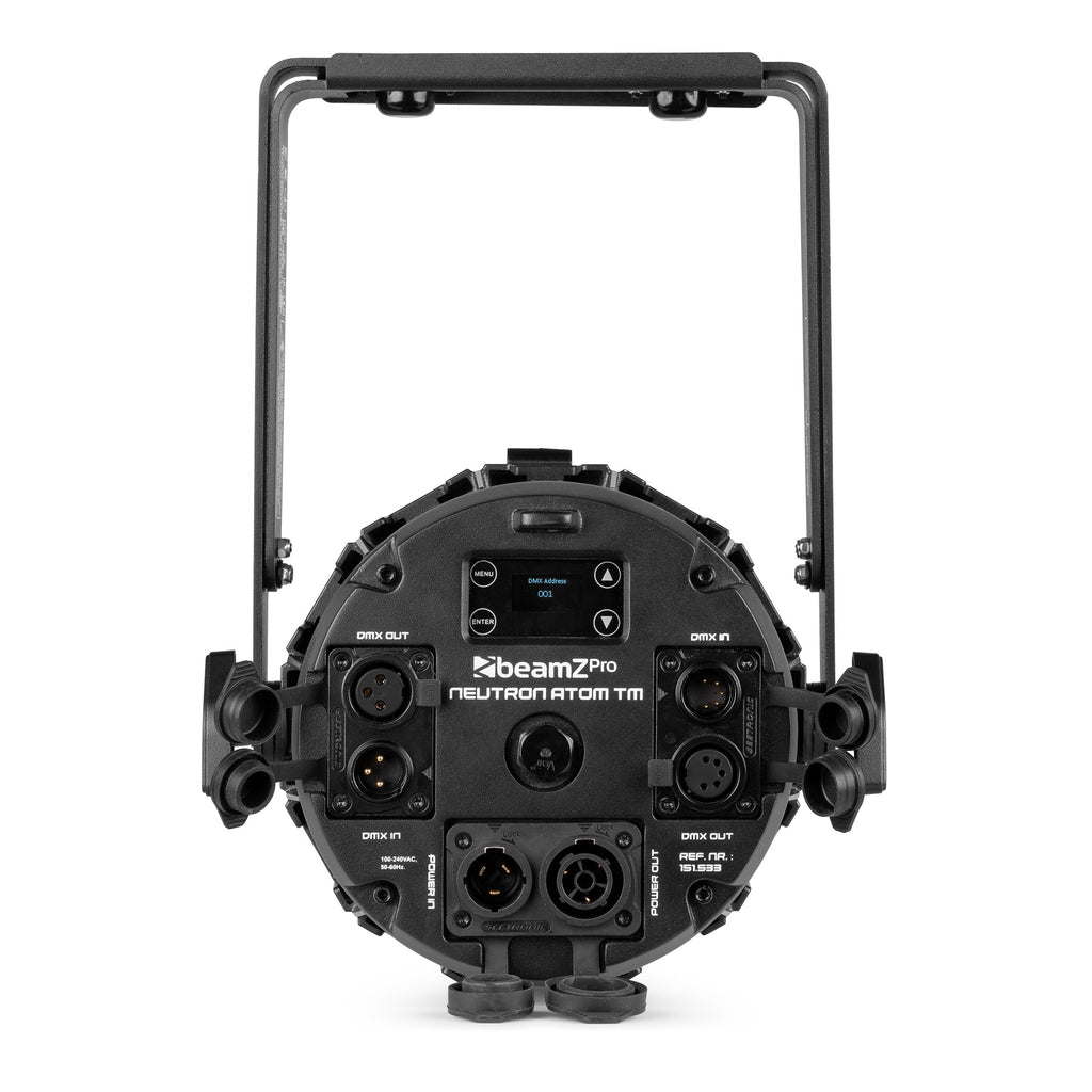 Der NEUTRON-ATOM TM ist ein hochentwickelter, hybrider LED-Scheinwerfer, der leistungsstarke Warmweiß- und Amber-Lichtquellen mit einer pixelsteuerbaren RGB-Aura-Hintergrundbeleuchtung kombiniert. Dank seines robusten Aluminiumgehäuses, IP65-Schutzklasse und dem intelligenten Linkable-System lassen sich mehrere Einheiten zu Lichtarrays oder kreativen Installationen verbinden – ideal für Bühne, Show, Architektur und Outdoor-Installationen.