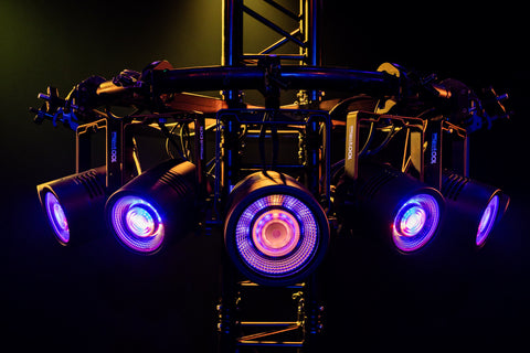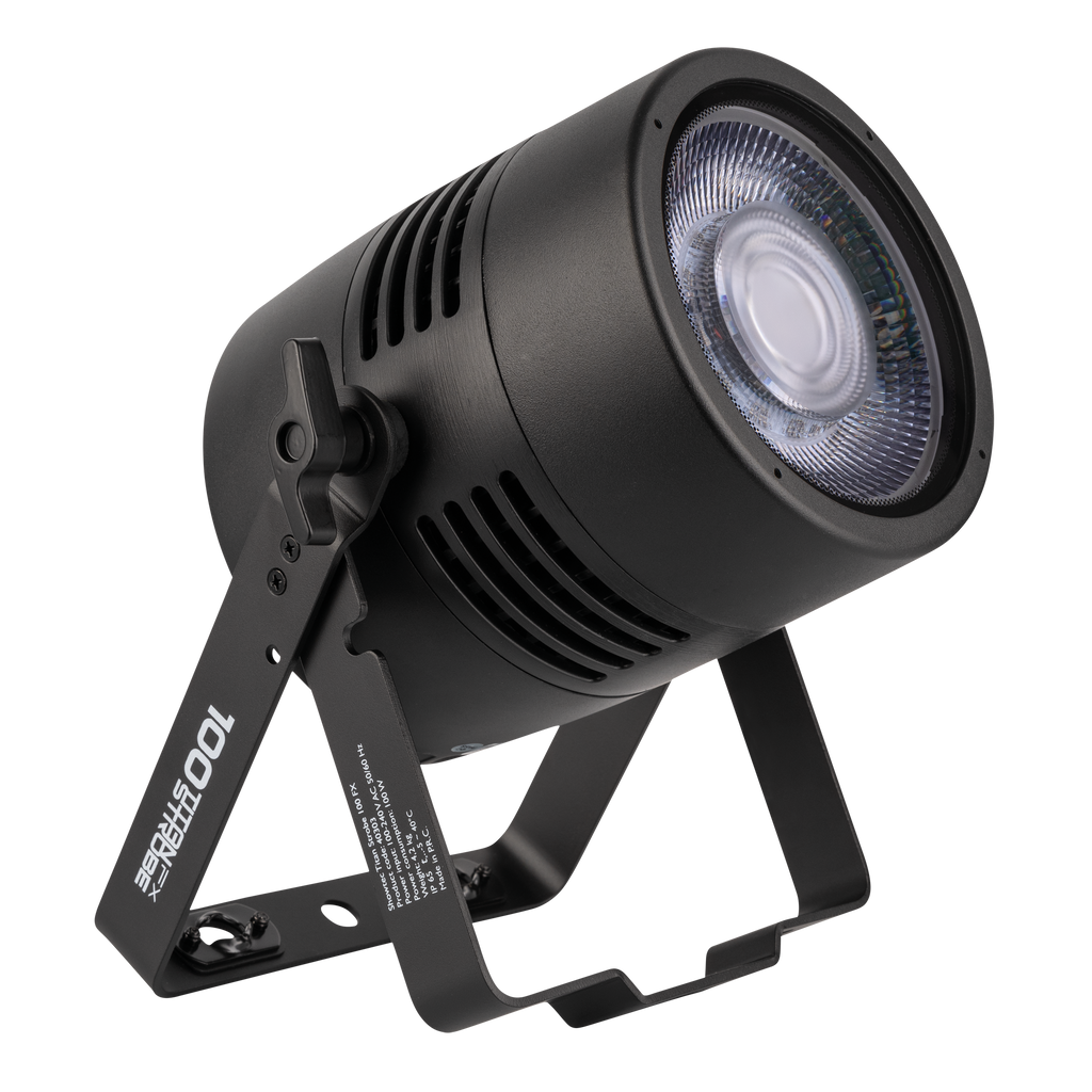Das Showtec Titan Strobe 100 FX verfügt über eine kaltweiße 100-Watt-COB-LED in der Mitte, die von 12 einzeln ansteuerbaren 2-Watt-RGBW-LEDs umgeben ist. Dadurch lassen sich kräftige Stroboskopeffekte erzeugen, die durch leuchtende Farben ergänzt werden. Die Fresnel-Linse sorgt für einen breiten Abstrahlwinkel. Der Titan Strobe 100 FX kann über DMX gesteuert werden. Außerdem verfügt es über RDM und kann im Master- oder Slave-Modus betrieben werden, aber auch im Standalone-Modus mit mehreren integrierten Programmen.